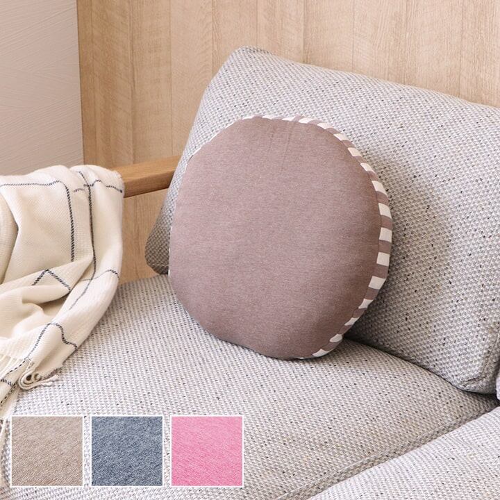 表地にニット素材を使用したクッションです。伸縮性があり、季節を選ばず年間ご使用いただけるようにしました。お部屋の雰囲気を崩しにくく使いやすい商品です。