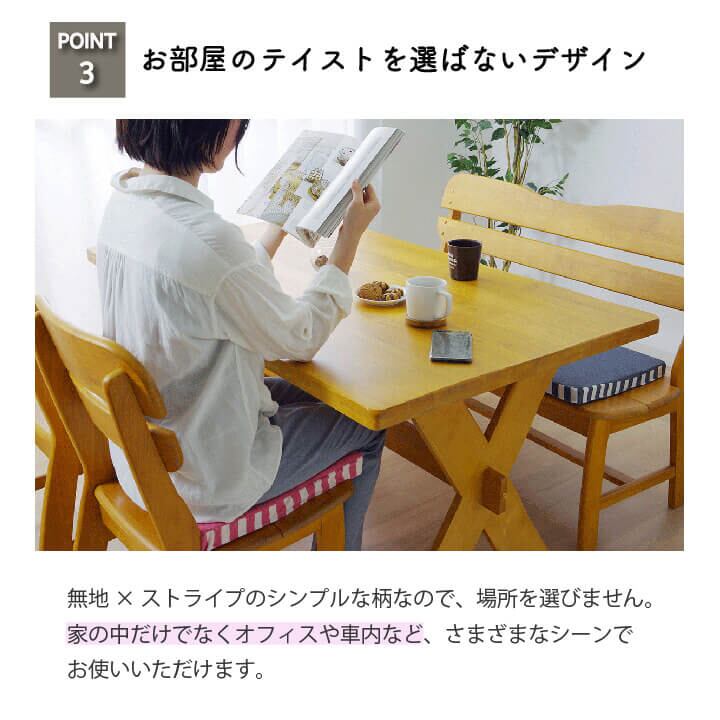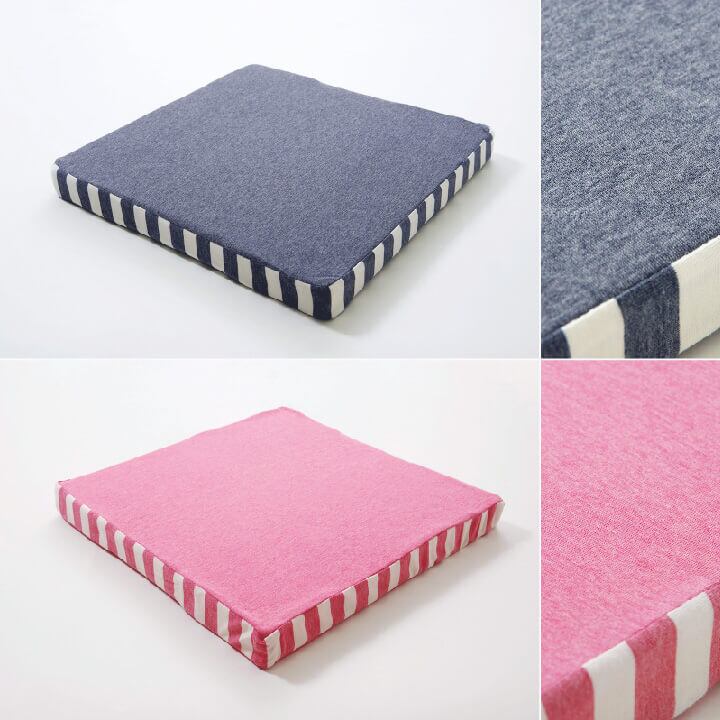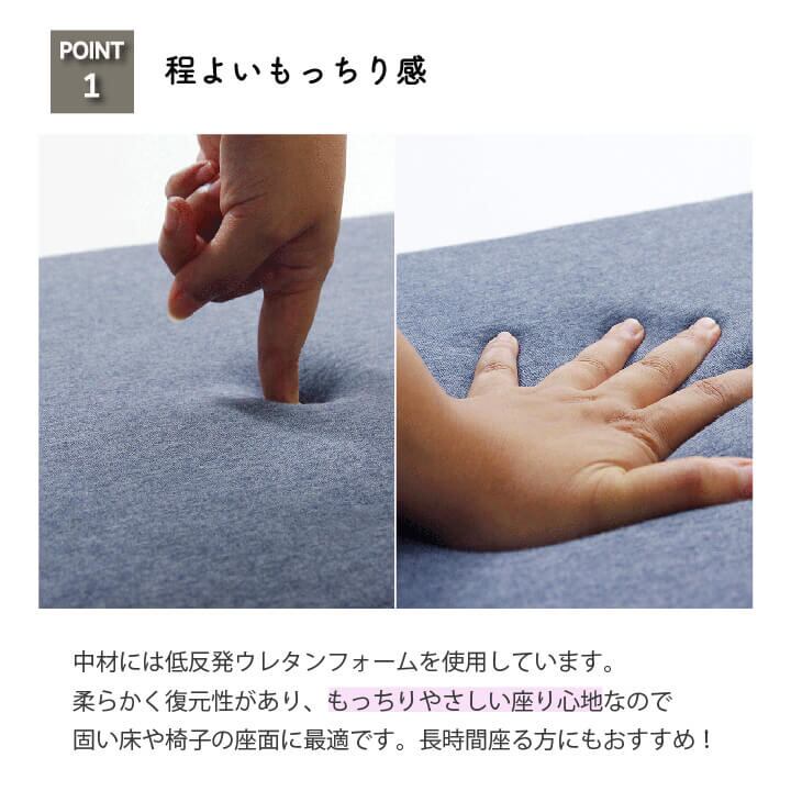 表地にニット素材を使用したクッションです。伸縮性があり、季節を選ばず年間ご使用いただけるようにしました。お部屋の雰囲気を崩しにくく使いやすい商品です。