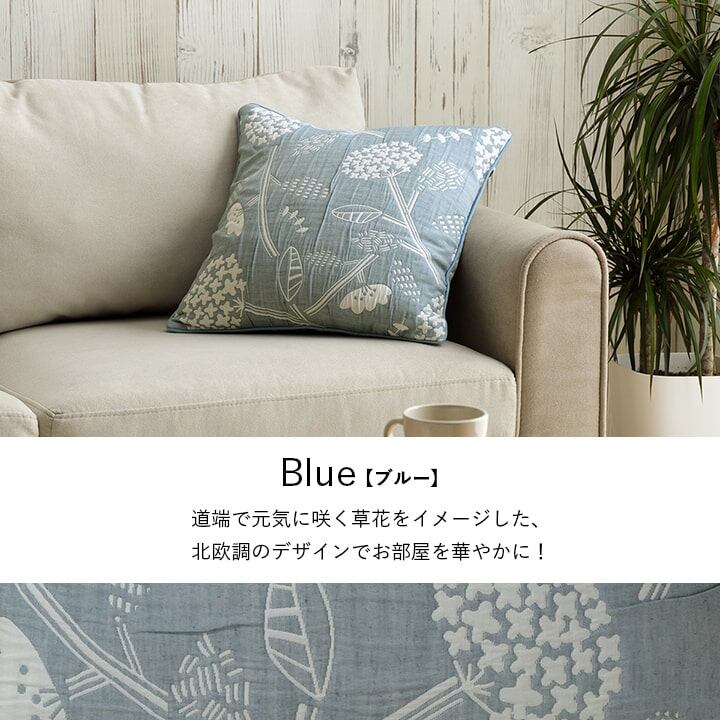 凹凸感のある、ふくれ織生地を使用した国内綿入れ加工のセアテクッションです。