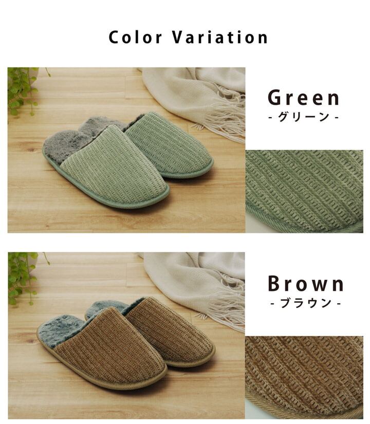 ご自宅用・来客用・オフィス用など幅広くどんな場面でもご使用いただけます。もこもこ素材でぬくもりのある肌触りなので素足で履くことが可能です。履いた時にフィットするので脱げにくく歩きやすいルームシューズです。裏側はTPR素材を使用しており、汚れた際は水拭きする事ができ、お手入れも簡単です。MサイズとLサイズの2サイズ展開で男性も女性も履けるのでお揃いでもご使用いただけます。