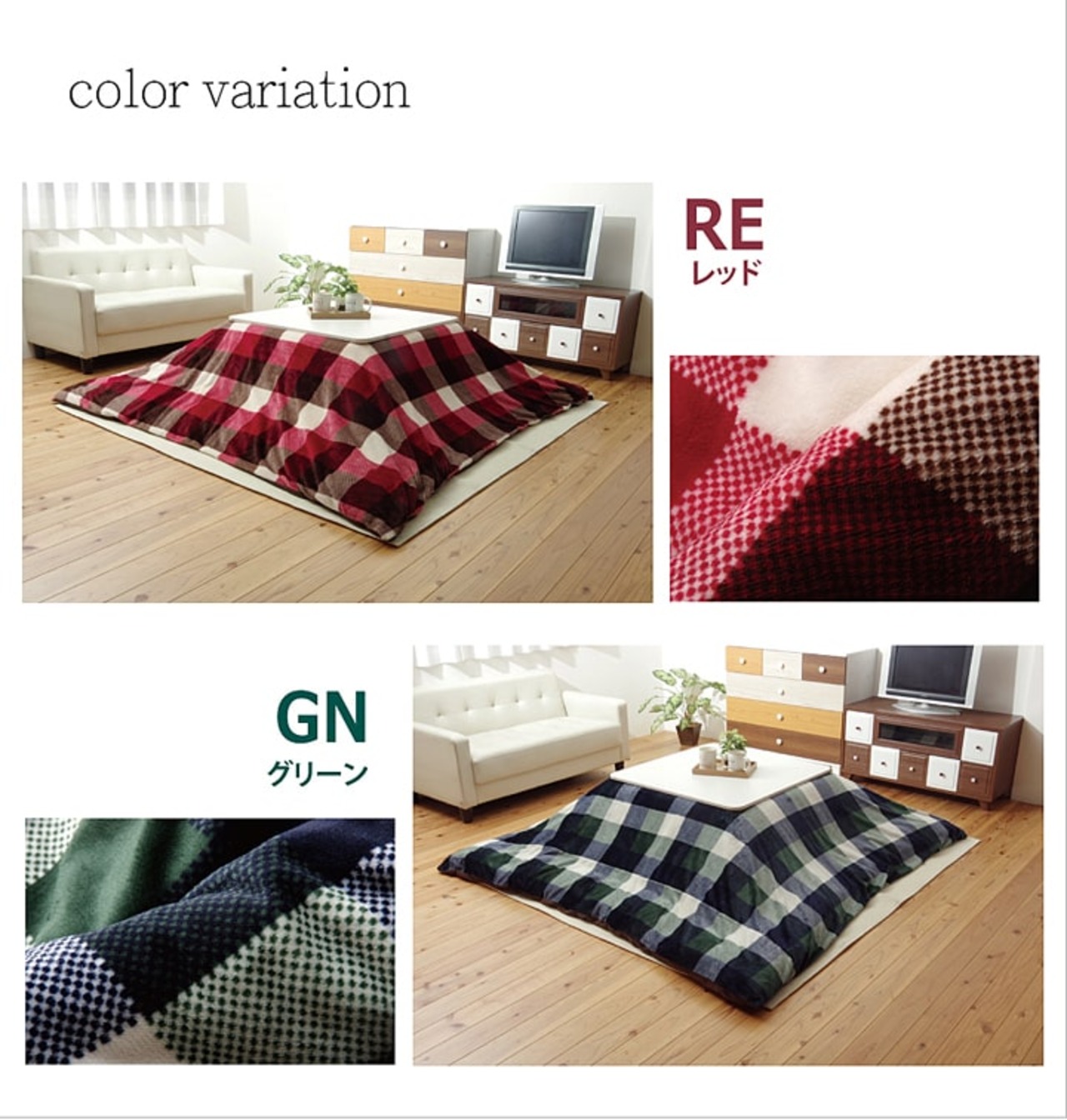 こたつ布団で人気のチェック柄をカバーにしました。表地にははっ水機能を施しています。ファスナー付きコタツ掛けカバーです。洗濯機で洗えるので清潔にご使用できます。