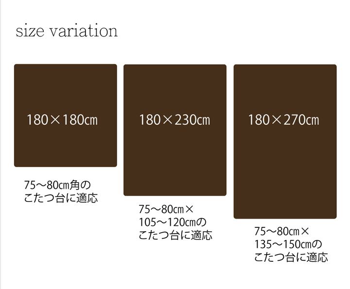 ベーシックな無地のこたつ中掛け毛布です。生地にはフリースを使用しています。保温性が高く、軽量でやわらかいのが特徴です。掛け布団とこたつ台の間に入れれば、保温性のアップと電気代の節約にも効果があります。洗濯機で洗えるので清潔にご使用頂けます。