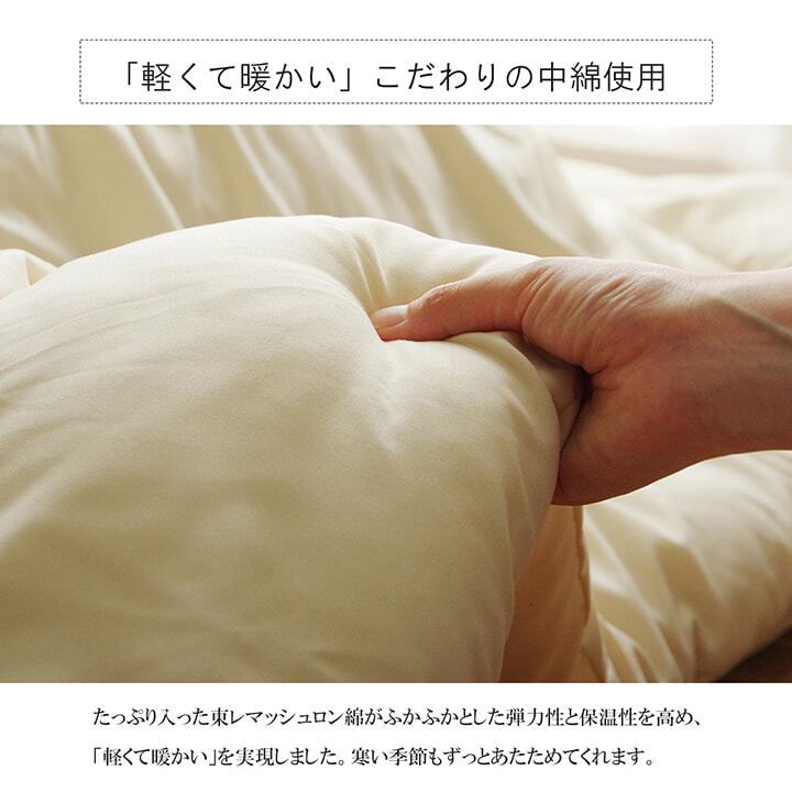 ふっくらとしたボリューム感は国内で綿入加工をしている商品だからできる仕上がり。