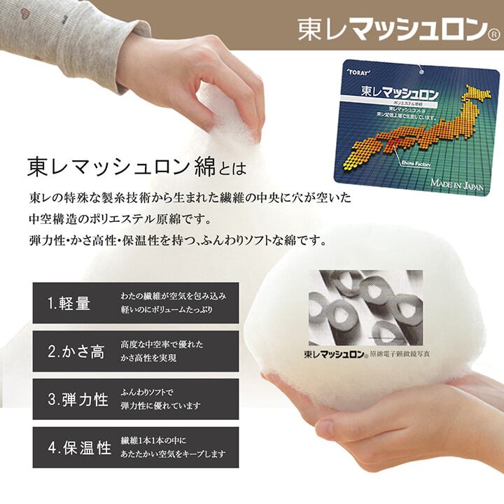 ふっくらとしたボリューム感は国内で綿入加工をしている商品だからできる仕上がり。