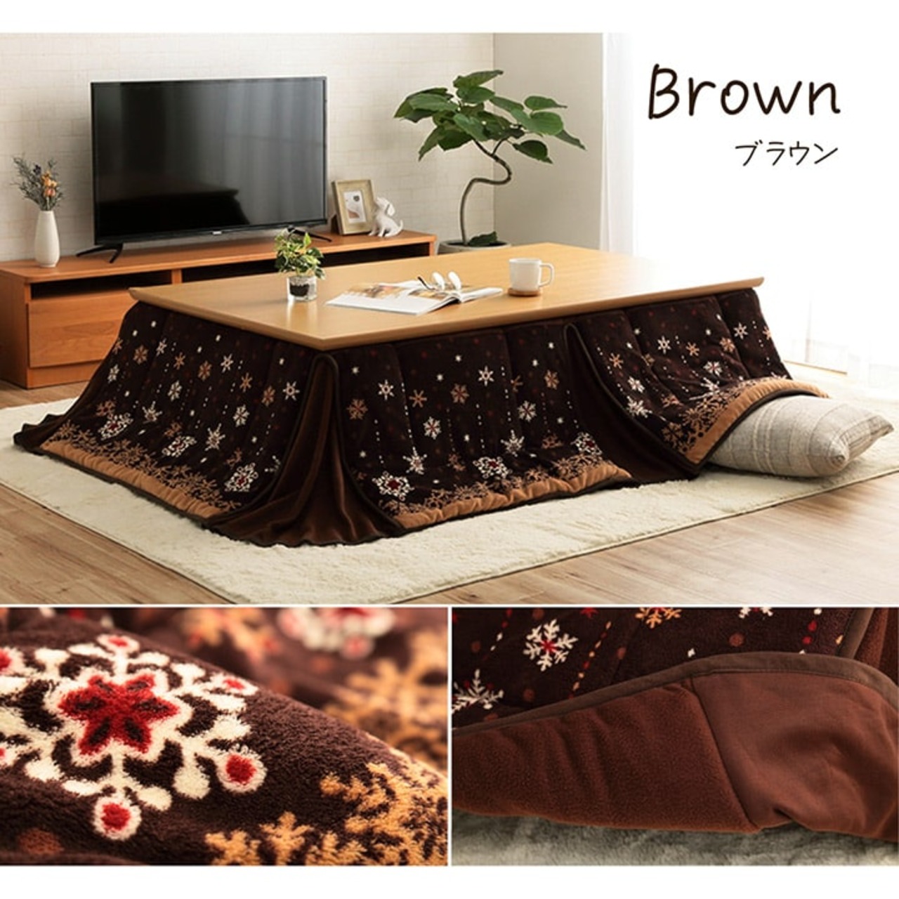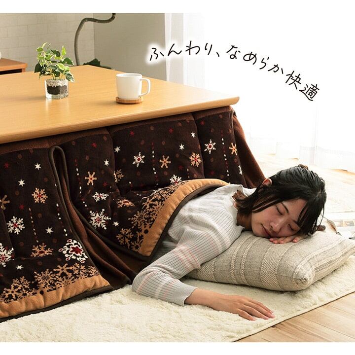向かい合わせでゆったりすわってくつろげる、大判サイズの省スペースのこたつ布団。