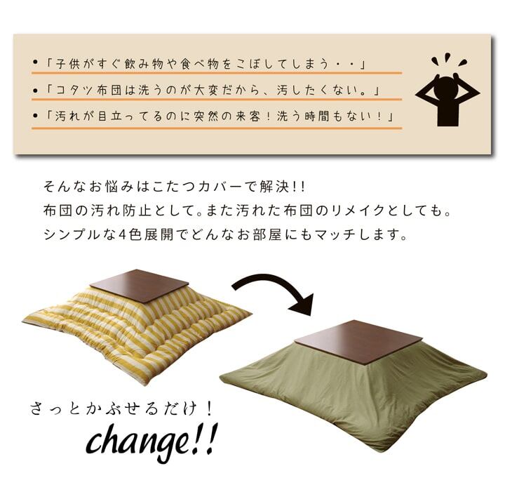 シンプルな無地のファスナー付きコタツ掛けカバーです。洗濯機で洗えるので清潔にご使用頂けます。