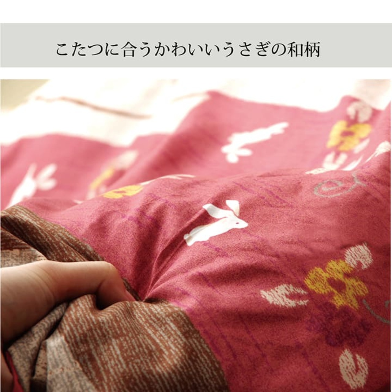 明るいうさぎ柄のファスナー付きコタツ掛けカバーです。洗濯機で洗えるので清潔にご使用できます。