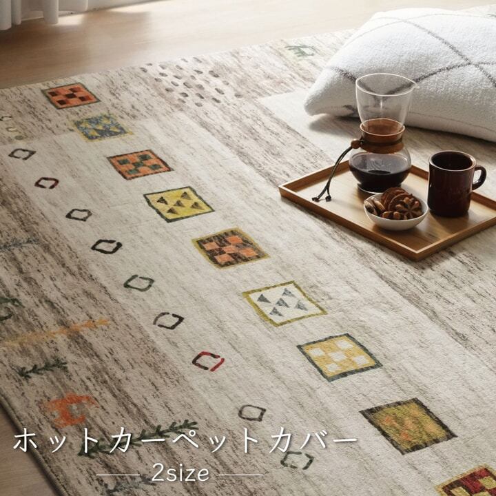 高目付のラグにギャベ柄のデジタルプリントを施した,デザイン性の高いラグに仕上げました。サラサラとした柔らかな肌触りです。軽量でコンパクトにたためるので,収納にも困りません。手洗いで洗濯ができるため,衛生的です。床暖房・ホットカーペットにも対応しており,オールシーズンお使いいただけます。