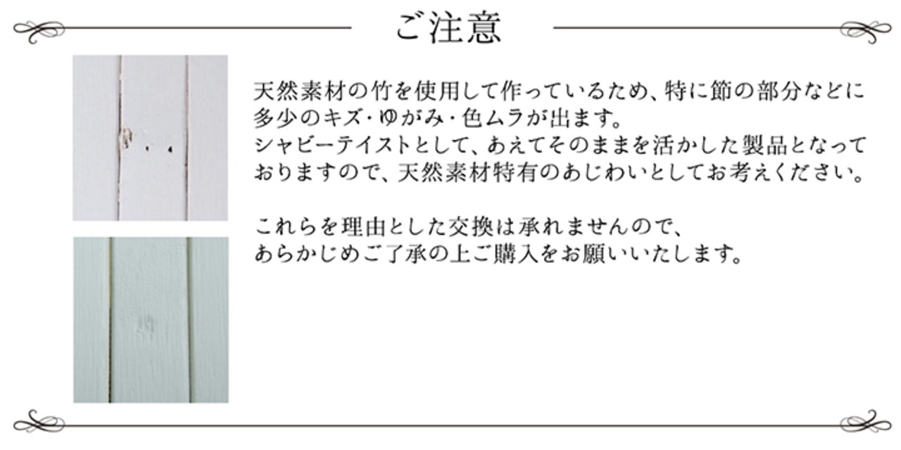 天然の孟宗竹を使用し、自然素材ならではの良さを残した竹ラグで、シャビーテイストインテリアを楽しみましょう。