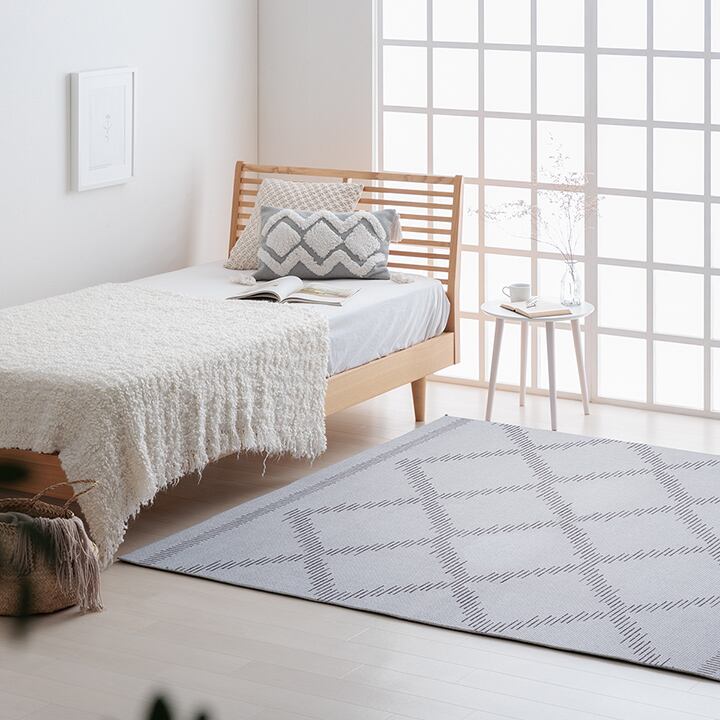 格子柄のベニワレン風ラグでおしゃれなモロッカンテイストに。シンプルなお部屋や北欧スタイルなど、幅広いインテリアにマッチします。