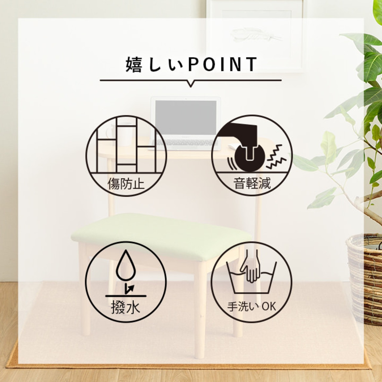 裏面は不織布だから学習机や椅子の移動も安心。床の傷防止に必要なアイテムです。