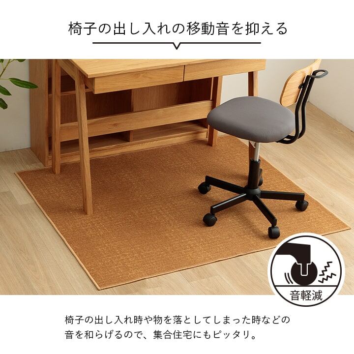 シンプルなデザインのカーペット。お子様用のデスクカーペットはもちろん、大人用の書斎やテレワークデスクにもおすすめです。