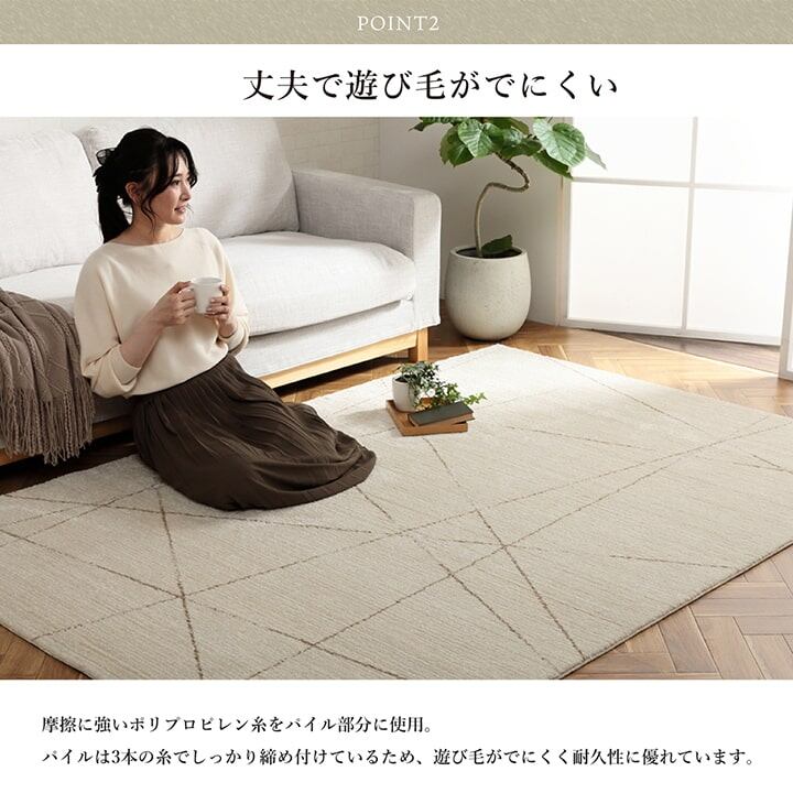 密度が高く、耐久性に優れているウィルトン織りのラグ