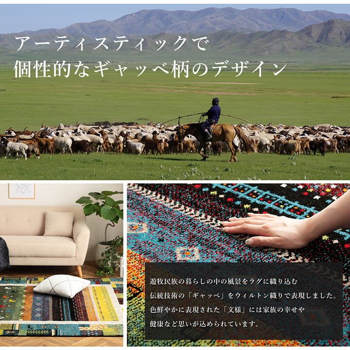 密度が高く、耐久性に優れているウィルトン織りのラグ