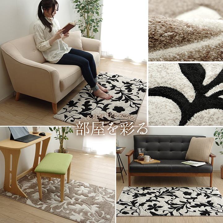 トルコ製のウィルトン織りのカーペットです。本商品の『繊維の密度を表すノット数』は128,000です。ポリプロピレン素材をパイル部分に使用しております。そのため繊維が細かくやわらかいタッチ感がある商品です。この商品はカービング加工をしており立体感のあるオシャレなラグです。ポリプロピレンは繊維の中でも軽い素材です。また、汚れが付着しにくく遊び毛や毛玉が非常に出にくいという特徴もあります。ホットカーペットカバーや床暖房にも対応しております。年間お使い頂けるカーペットです。