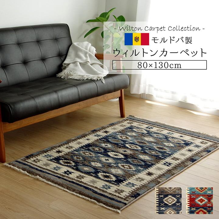 モルドバ製のウィルトン織りのカーペットラグです。本商品の『繊維の密度を表すノット数』は169,500です。ポリプロピレン素材をパイル部分に使用しております。そのため繊維が細かくやわらかいタッチ感がある商品です。この商品は畳むこともでき、程よいボリューム感もあります。キリム柄のデザインで色も鮮やかなカーペットラグです。ポリプロピレンは耐久性に優れ、繊維の中でも軽い素材です。また、汚れが付着しにくく遊び毛や毛玉が非常に出にくいという特徴もあります。年間お使い頂けるカーペットラグです。本商品にはヒートセット加工を施しており、ヒートセット加工をすることで柔らかくなめらかなタッチ感に仕上げました。