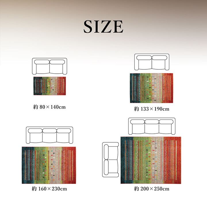 トルコ製のウィルトン織りカーペットです。本商品の『繊維の密度を表すノット数』は112,000ノットです。ギャベ柄を落ち着きのある色合いのグラデーションでまとめました。本商品のパイル部分にはポリプロピレン素材を使用しております。ポリプロピレンはヘタリにくく、耐久性に優れ、繊維の中でも軽い素材です。また、汚れが付着しにくく、遊び毛や毛玉が非常に出にくいという特徴もあります。本商品にはフリーゼセット加工を施しております。フリーゼセット加工でパイルをツイストすることによりボリューム感を出し、ふかふかとした肌感触に仕上げました。ホットカーペットカバーや床暖房にも対応しております。安心して年間お使い頂けるカーペットです。