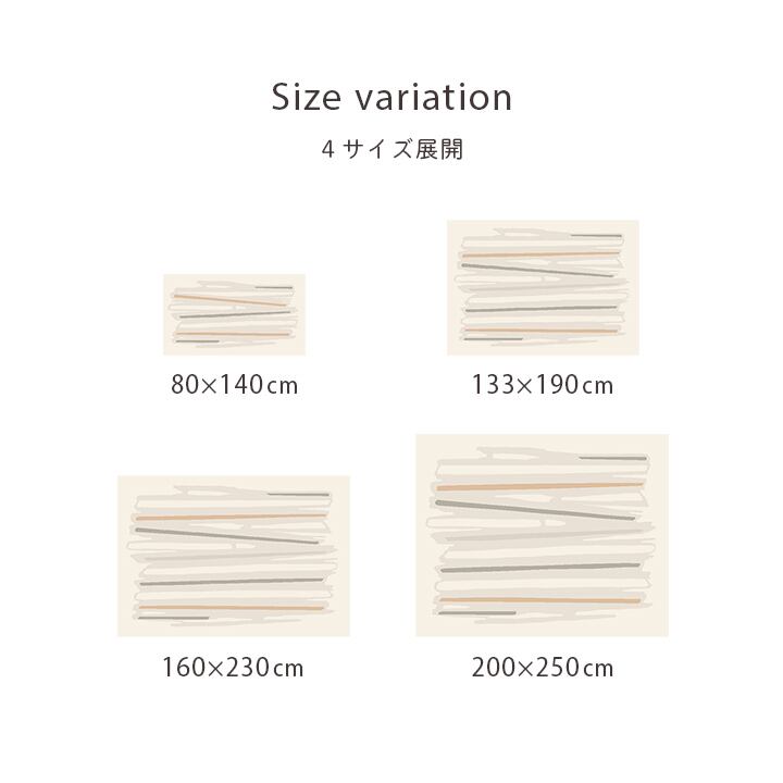 80×140cmサイズは、ベッドサイドや玄関マットなどリビング以外のお部屋でもお使いいただけます。