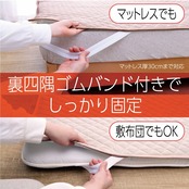 ベッドやお布団を汚れや劣化から守ってくれる便利なベッドパッドです。ご使用いただく事でクッション性も上がり寝心地を向上させます。ご家庭の洗濯機で丸洗いできます。(洗濯の際は洗濯ネットを必ずご使用ください) 四隅にズレ防止用のゴムバンド付きです。