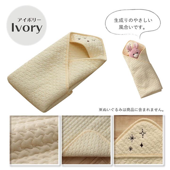 肌触りのいいコットン100%の側生地のイブルのおくるみです。