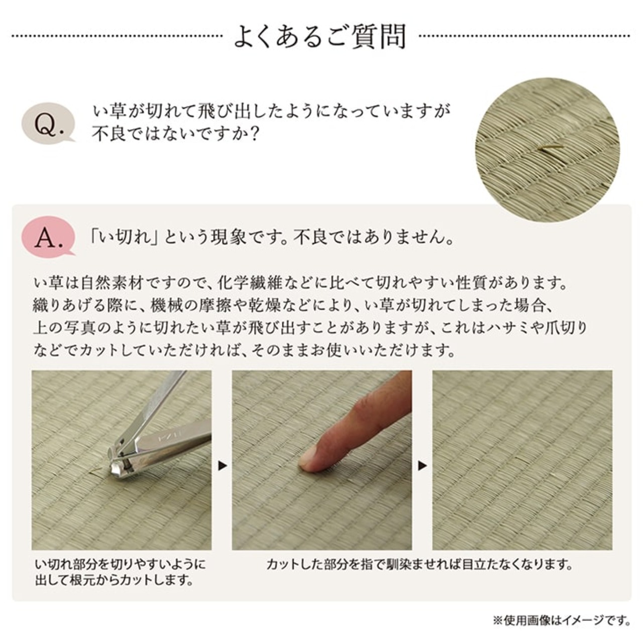 フルーツ柄のかわいらしい、い草のキッチンマットです。キッチンマットの不満を解消してくれる商品です。化繊もののキッチンマットと比べ、汚れにくくシミになりにくいです。小さなゴミでも、ほうきで掃く、掃除機をかけるだけで取り除くことができます。燃えにくい性質の素材のため火を使うキッチンでも安心してご使用いただけます。い草自体が持つ油分により汚れを弾くので洗う必要がなく長くご使用いただけます。裏地には国産のウレタンフォームを使用することで、丈夫でクッション性があり滑りにくくしました。キッチンに限らず様々な場所・シーンでお使いいただけます。