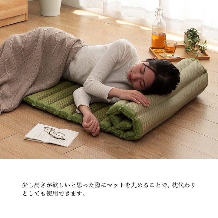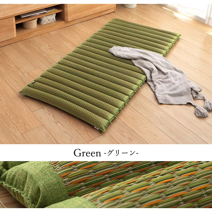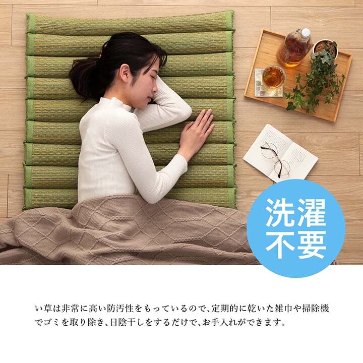 このような大きな生地物商品ですと洗うことは大変ですが、い草商品は洗う必要がないので、お手入れの手間が少ない商品です。定期的に乾いた雑巾や掃除機でゴミを取り除き、日陰干しをするだけで、お手入れ完了です。