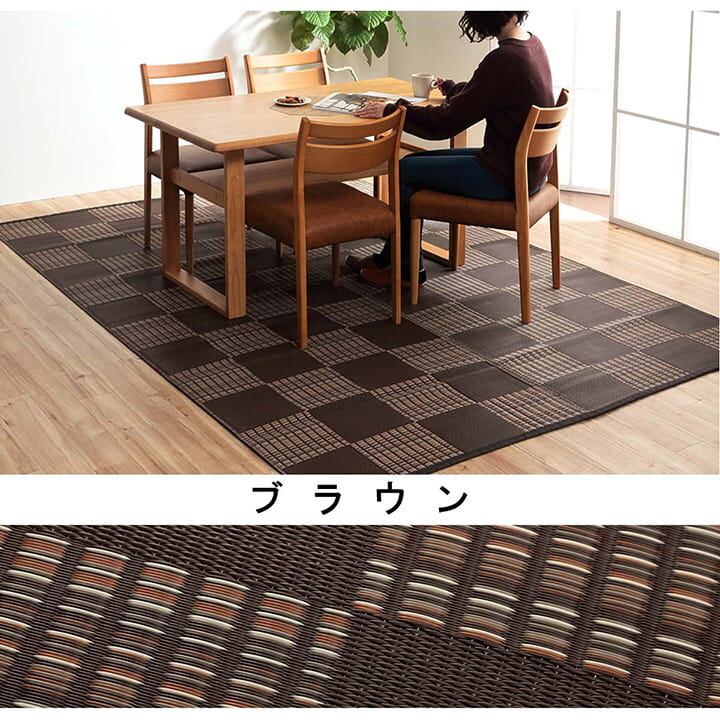 細いストロー状のような素材を細いパイプ状にして織り込んだ敷物です。
