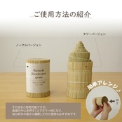 国産イ草100%の消臭剤です。イ草の良さをもっと多くの人に知ってもらいたいという想いから「デオグラス」は誕生しました。イ草の効能の一つである消臭効果を活用し、お車やお部屋でご使用頂けるコンパクトサイズに仕上げました。本品は日本国内で栽培、育成、収穫された天然イ草を使用しいています。使用シーンは様々、リビング、玄関、トイレ、車(ヘッドレスト、ドリンクホルダー、シートの下)など、その他いろいろな場所で活躍します。長さをカットしてコースターやランチョンマットが自作できます。その際はカット箇所をボンドなどで留めて下さい。※箱のデザインはイメージです。予告なくデザインが変更になる場合があります。ご了承下さい。