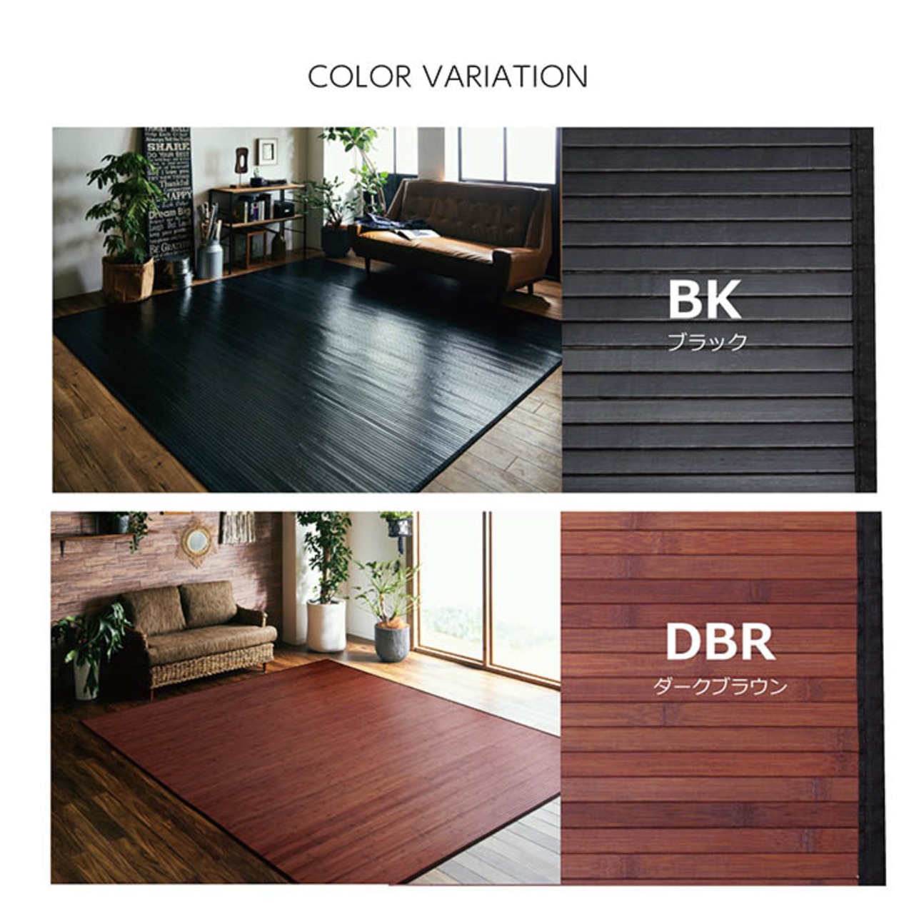 竹は耐久性に優れ、熱伝導率が高いため自然のひんやり感があります。表面の肌触りを滑らかにするため、また竹の色を揃えるためにUV塗装を施しています。シンプルな糸無しの張り付けタイプです。また無垢材を使用し、あたたかみのある質感に仕上げました。素材は17mm幅の竹ヒゴを使用しています。17mm幅の竹ヒゴは大きく育った竹からしか取れない素材です。竹は他の木材と比べると格段に成長が早く(3〜5年で成竹)、持続的生産が可能な環境に優しいサスティナブルな素材です。