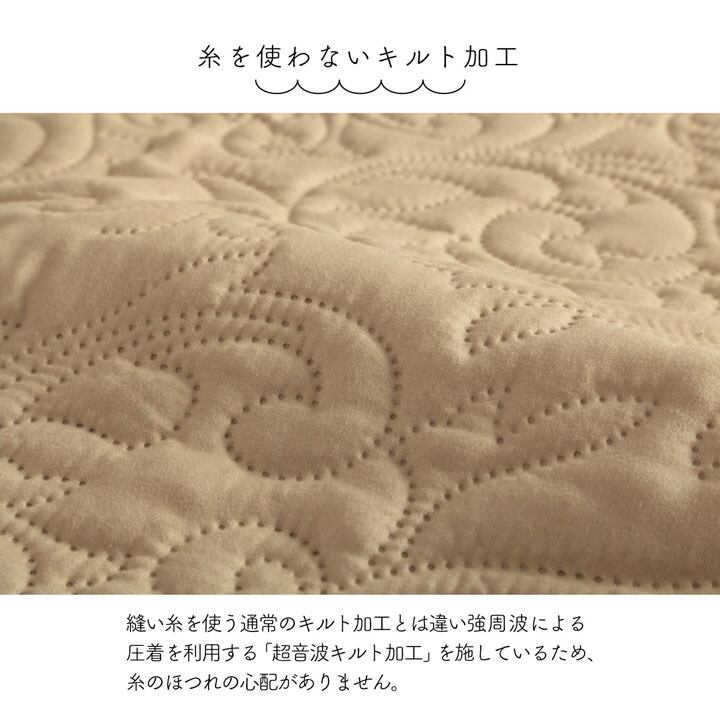 ベッドスプレッドやこたつカバー、ソファカバー、ホットカーペットカバーなど、一年中活躍できるマルチカバーです。糸を使わない超音波キルト加工を施しているため、糸切れの心配がありません。汚れても、サッと取り外して洗濯機で丸洗いができるため衛生的です。
