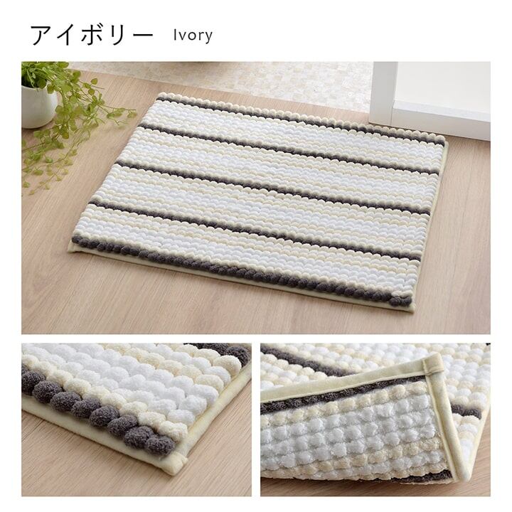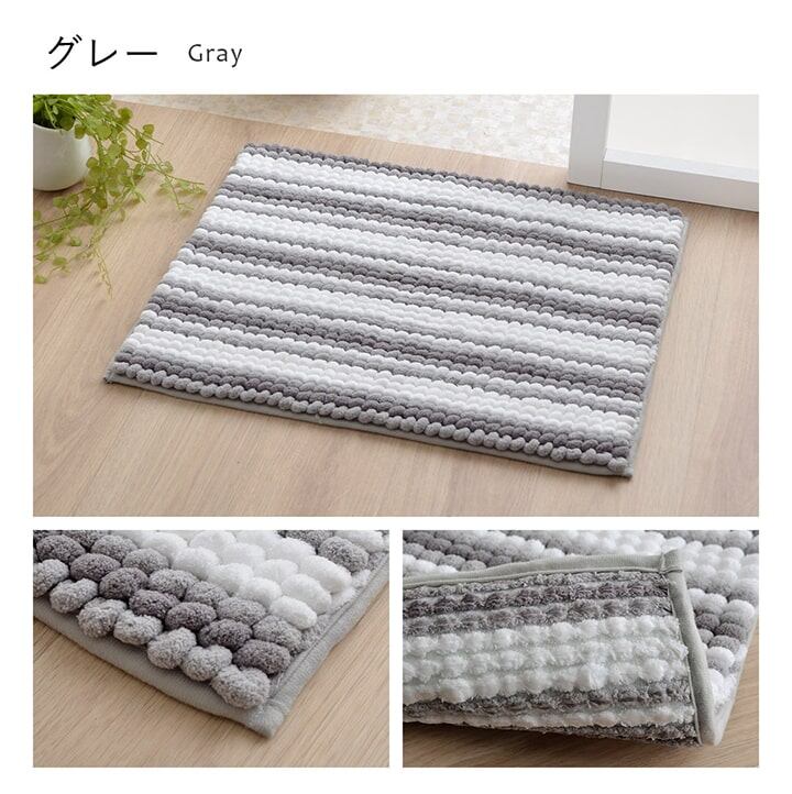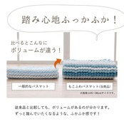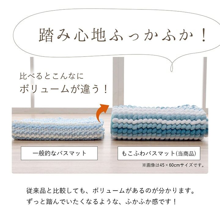 ふわふわで吸水性抜群のボリュームたっぷりなバスマットです。抗菌防臭効果がありますので清潔のご使用いただけます。裏地は滑りにくい加工の為、しっかり拭いてもずれる心配がありません。肌触りはとても気持ちがいいので、お風呂上りも快適です。