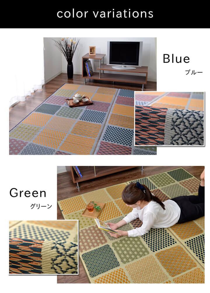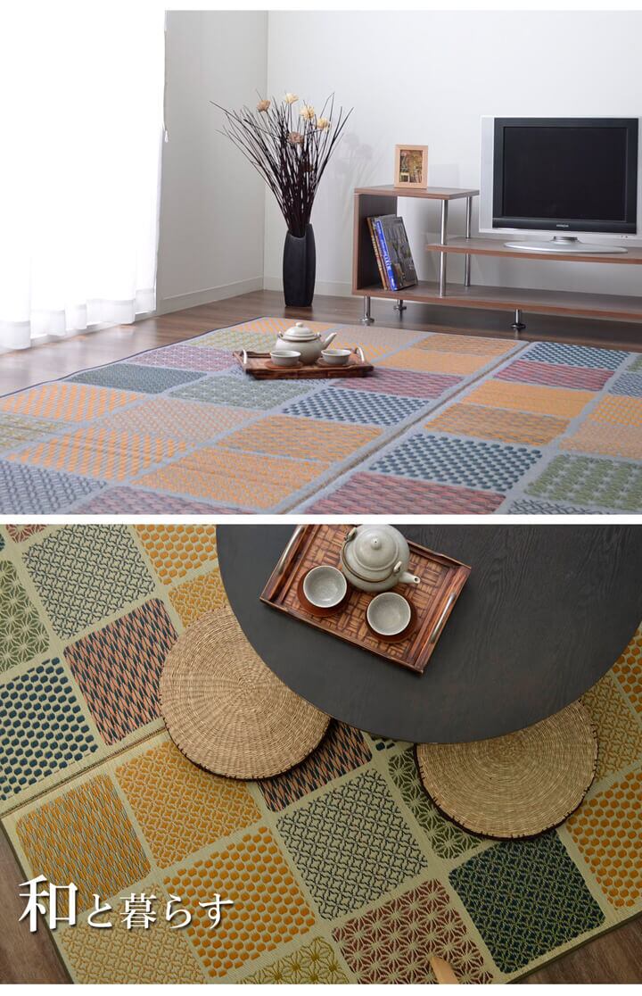 和室にも洋室にも合うモダンなデザインのい草ラグです。裏面にはフローリングを傷つけにくいウレタンフォームを使用しています。クッション性もあり思わずごろんと横になりたくなる肌触りとい草にいい香りが特徴です。国産(九州産)のい草を使用しているため一本一本が太く、表皮が厚く繊維がキメ細かいので弾力性があり、耐久性に優れています。い草には空気の自然浄化作用、湿度の調節作用などがあります。また汚れにくく、使用するうちに黄金色に変化し味が出ます。い草に青森ヒバエッセンス加工を施しています。(抗菌、防臭効果)