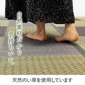 市松柄でシンプルなデザインに仕上げたイ草花ござカーペットです。花ござを敷くだけで畳のお部屋をリフレッシュ出来ます。日焼けしてしまった畳のリフレッシュに、新品の畳を汚さない為のカバーにご使用下さい。い草には空気の自然浄化作用、湿度の調節作用などがあり、汚れにくいという特長があります。い草に青森ヒバ加工を施しています(抗菌・防臭効果)。青森県のヒバの木から抽出した「ヒバ油」をメーカー独自の技術で材料や商品に加工しました。「ヒバ油」には、ヒノキチオールという天然物質としては極めて抗菌性の高い成分が含まれ、医療や食品など多分野で利用研究が進められています。※自然素材であること、また職人が一つ一つ手作業にて加工を行うため、形状のバラつきや表示サイズと多少異なることがあります。ご了承下さい。