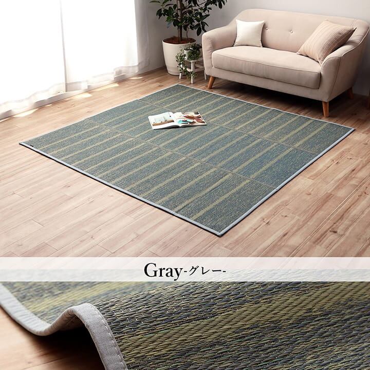 どのようなテイストのお部屋にも合わせやすい、シンプルなデザインのい草ラグです。