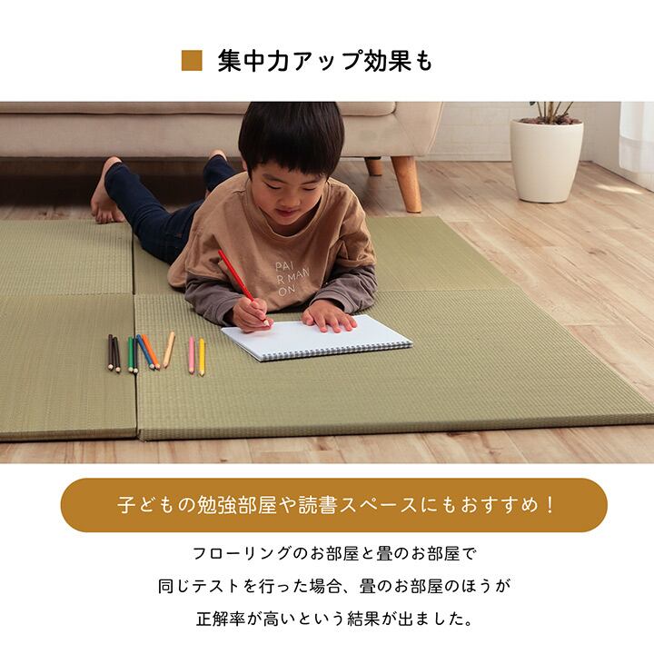 フローリングに置くだけ。なつかしい畳の香りと肌ざわりを手軽に楽しめます。い草には空気の自然浄化作用、湿度の調節作用などがあります。また汚れにくく、使用するうちに黄金色に変化し味が出ます。中材は木製ボードタイプ+ポリエチレンで程よいクッション性と重量感があります。※ 掲載写真は表記サイズと異なる場合がございます。※ 画面上のカラーはご使用ブラウザやモニターの設定により、実物とは若干異なる場合がございます。あらかじめご了承の上、ご注文をお願いいたします。