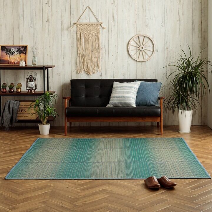 さわやかなカラーリングとグラデーションが涼しげない草ラグです。