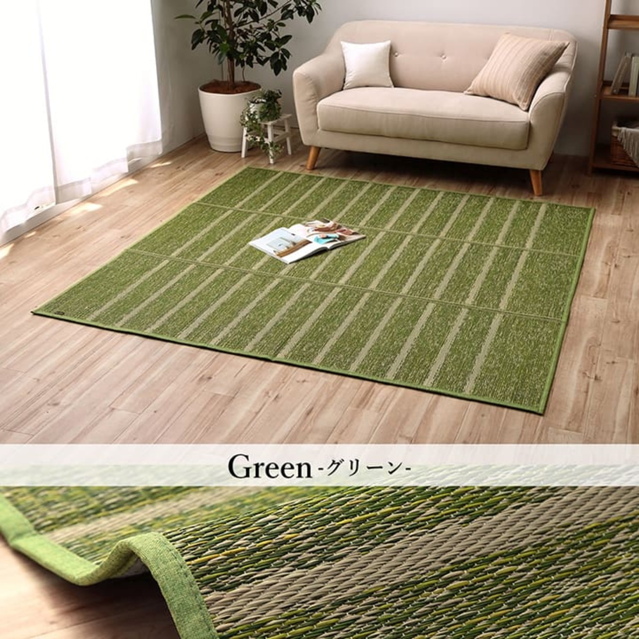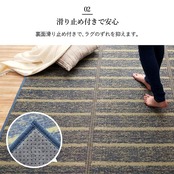 どのようなテイストのお部屋にも合わせやすい、シンプルなデザインのい草ラグです。