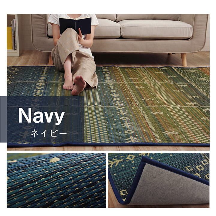 中材はウレタン8mmを使用し、底つき感のないい草ラグです。ギャベ柄のお部屋を華やかにしてくれるラグです。裏は不織布で床を傷つけません。い草には空気の自然浄化作用、湿度の調節作用などがあります。い草にヒバエッセンス加工を施しています(抗菌防臭効果)。青森県のヒバの木から抽出した「ヒバ油」をメーカー独自の技術で商品に加工しました。「ヒバ油」には、ヒノキチオールという天然物質としては極めて抗菌性の高い成分が含まれ、医療や食品など多分野で利用研究が進められています。