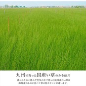 届いたユニット畳を床に置くだけで和のスペースが出来上がります。ヘリの無い、半畳タイプです。同系色の色で飽きのこない、落ち着いた市松柄を出しました。表生地には国産(九州産)のい草を使用しています。一本一本が太く、表皮が厚く、繊維がキメ細かいので弾力性があり、耐久性に優れています。い草には空気の自然浄化作用、湿度の調節作用などがあります。また汚れにくく、使用するうちに黄金色に変化し、味が出ます。軽量タイプなので、持ち運び、設置、片づけなども楽にできます。裏の不織布にはすべり止め加工を施しています。また、連結用のテープを使用すれば、お部屋に合わせて簡単に何枚でもつなげることが出来ます。